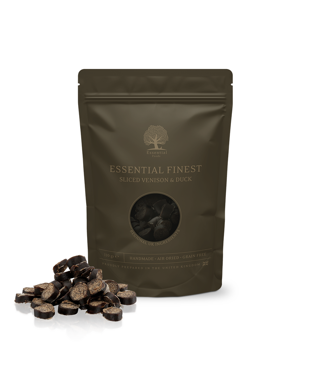 When only the BEST is good enough. ESSENTIALS FINEST is our range of luxury treats using only the best ingredients like our meals. Super tasty, well maybe a bit too much but we can't help it! Small pieces of snacks made with venison and duck. Perfect as extra special treat/training treat. Air-dried and 100% made in England.